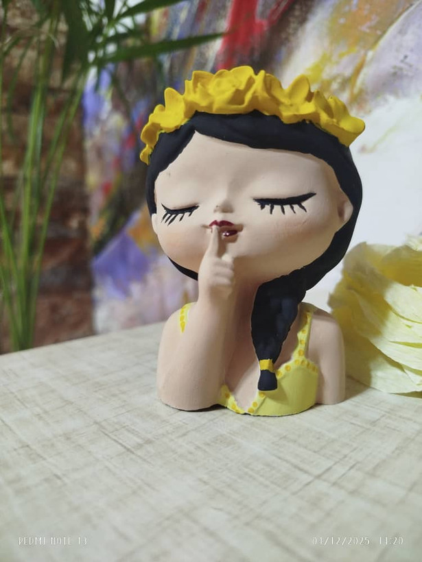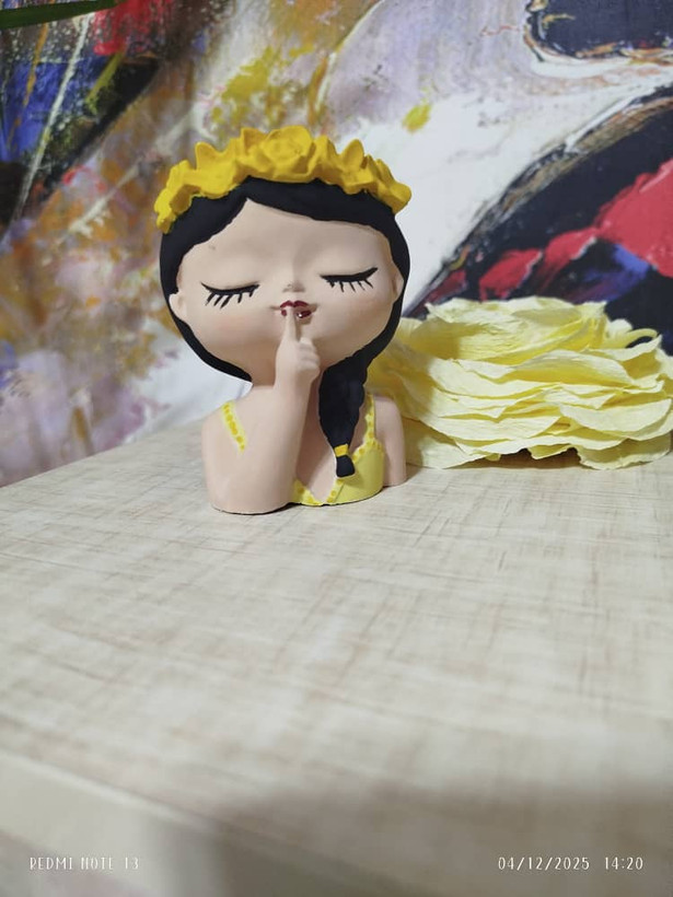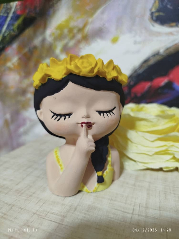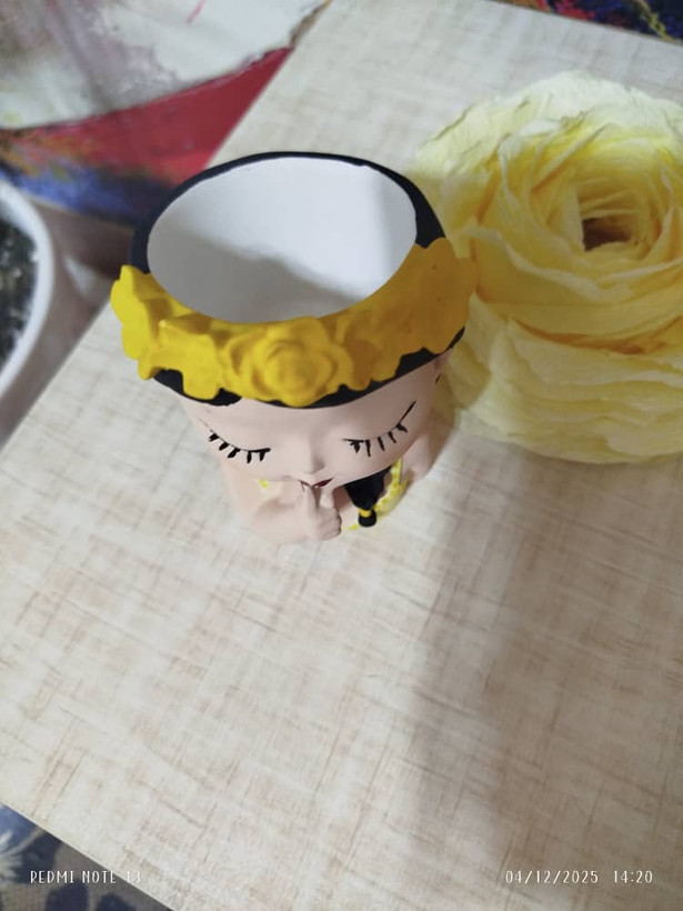 اگر دنبال یک گلدون متفاوت و خاص برای زیبایی فضای خودت هستی، این گلدون فوقالعاده انتخاب ایدهآلیه! طراحی خاص چهرهی دختر با حالت "هیس" و تاج گل زرد رنگ، این گلدان رو به یک اثر هنری تبدیل کرده که هم حس آرامش میده و هم توجه همه رو جلب میکنه.