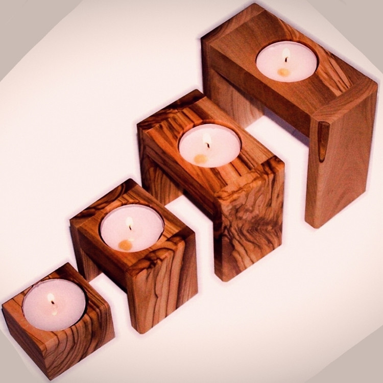 شمعدان چوبی مدل میزی طرح تو در تو مدرن وارمری 4 عددی کد R75