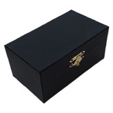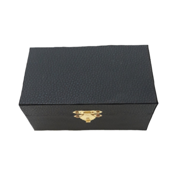 کالای مربوطه از جنس چوب و دارای روکش مشکی با رنگ طلایی براق در داخل جعبه می باشد. قفل و چفت جعبه از نوع نعلی درهم می باشد که باز و بسته شدن را راحت می نمهاید. جعبه دارای عرض 7.5 سانتی متر و طول 13 سانتی متر همچنین دارای ارتفاع 6 سانتی متر می باشد. جعبه بسیار سبک و خوش دست در عین حال محکم و مقاوم می باشد. دارای فیبر فشرده شیار دار که جواهرات را بدون تماس از هم نگه میدارد چرا که تماس جواهرات باعث خوردگی می شود.فیبر دارای روکش جیر قرمز می باشد. نحوه ی باز و بسته شدن جعبه بسیار روان و راحت است.