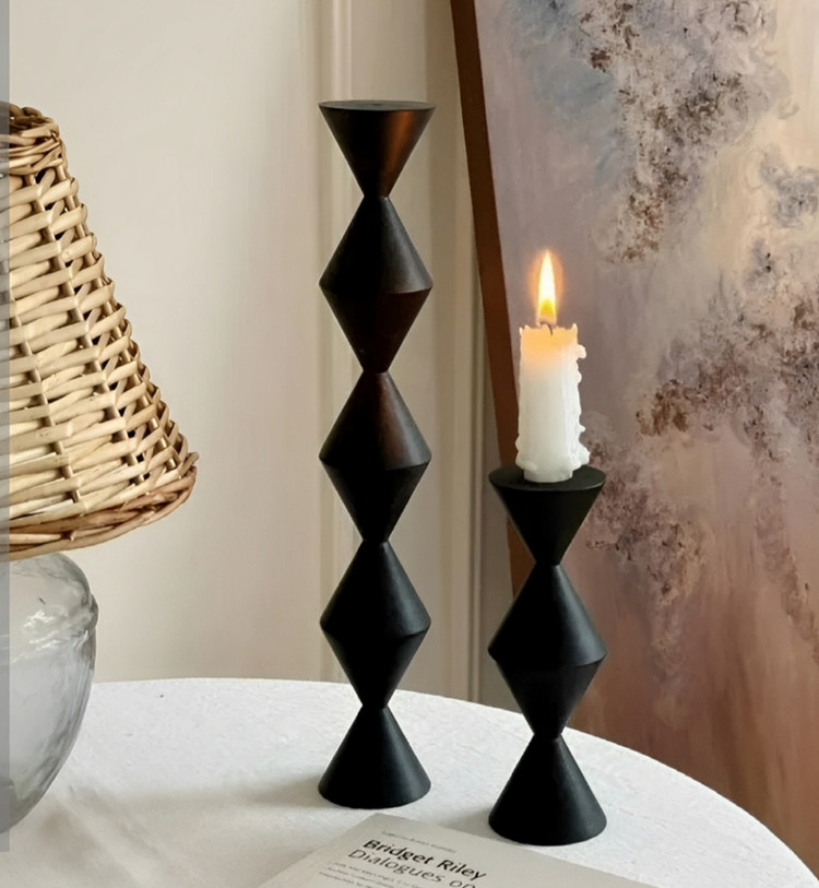 شمعدان دو تکه چوبی طرح لوزی مدل مدرن لاتین R17_ lk