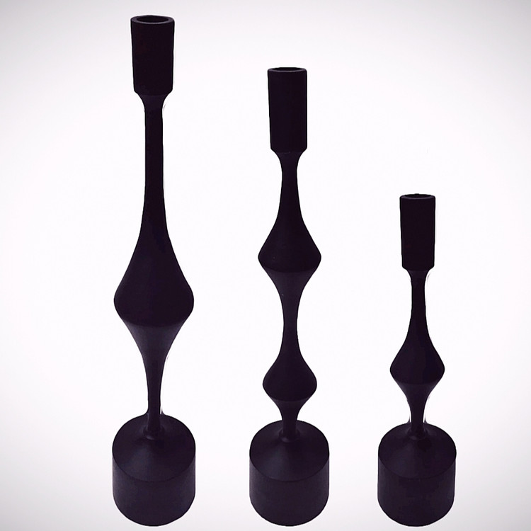 شمعدان چوبی چنار مشکی سه تکه مدل مینیاتوری طرح گل ناز سبک رومی کد 5656