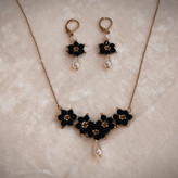 دیدن محصولات مرتبطاین محصول یک نیم ست گوشواره و گردنبند شیک با متریال کاربردی از کریستال و مروارید و منجوق است ... اتصالات و زنجیر از جنس استیل رنگ ثابت در رنگهای متنوع می باشد. اینکار با رنگ بنفش آسمانی بسیار زیبا و زیبایی شمارو دوبرابر میکند.