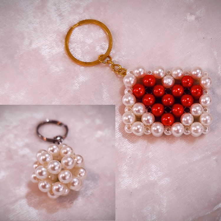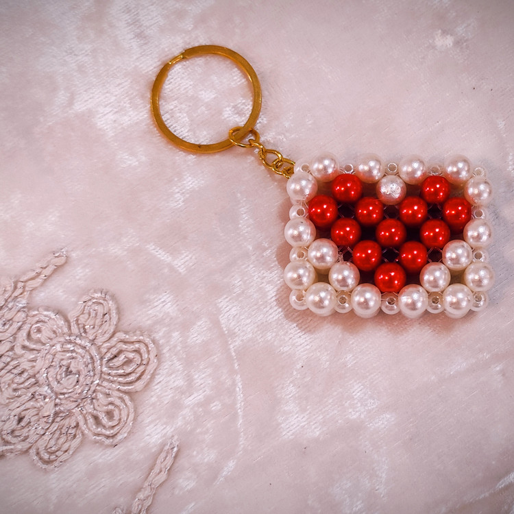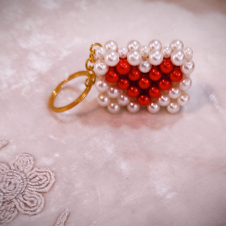 ست جاسوئیچی زنانه مدل مرواریدی شیک طرح کیف و توپی رنگ سفید قرمز کد 44121