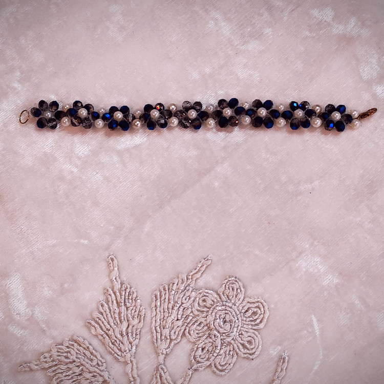 دستبند زنانه نگین کریستالی رنگ ثابت طرح گل سرمه ای قفل دار از نوع طوطی کد 3377