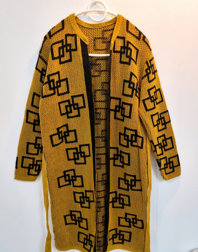 مانتو بافت زنانه رنگ خردلی بلند ۹۰ سانتی