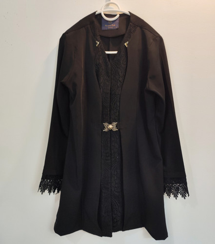 مانتو مجلسی زنانه رنگ مشکی گیپور دار قد ۷۵ سانت